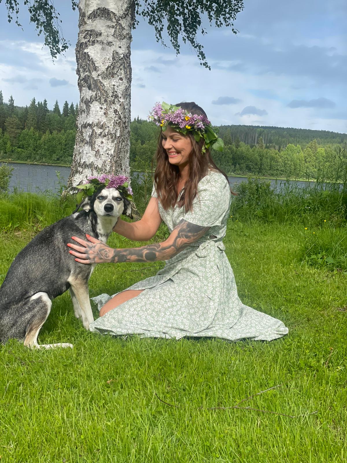 Jag bor tillsamman på en liten gård i skogen tillsamman med sambon Simon och hunden Fenja. Och även 7 hönor och en tupp! Givetvis har alla dessa oxå namn, men de roligaste är nog tuppens.😂
